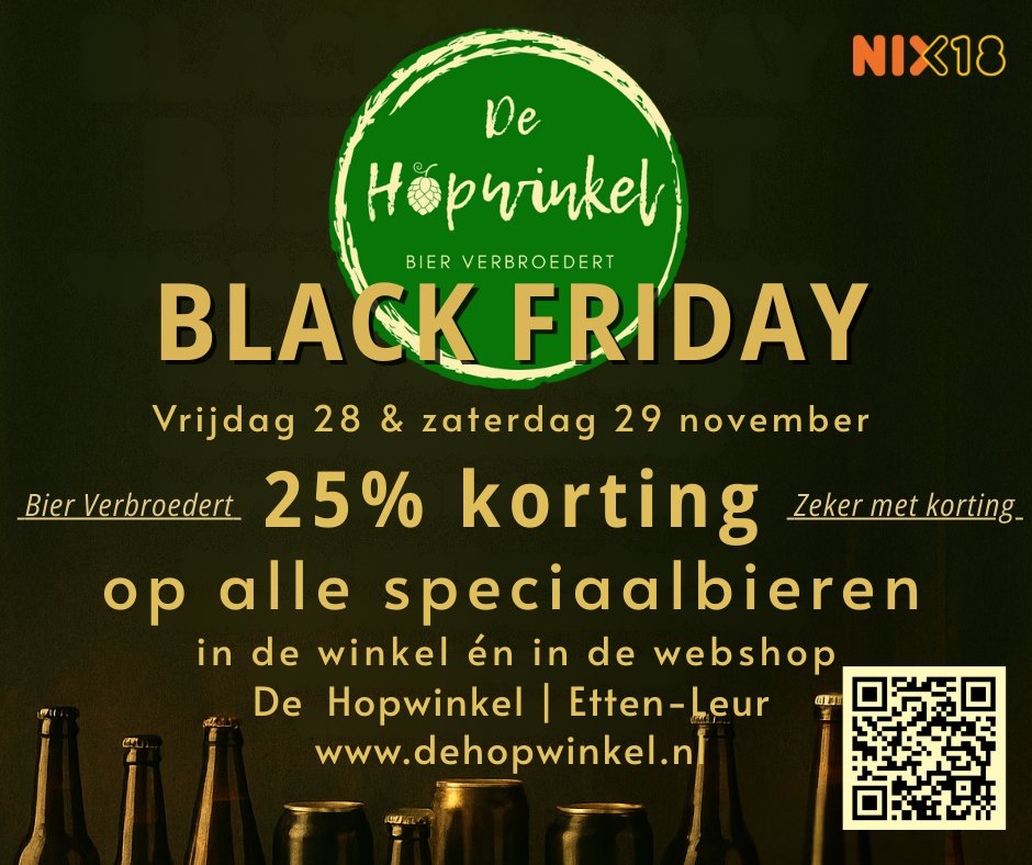 Black Friday in De Hopwinkel! 𝗗𝗶𝘁 𝗯𝗲𝘁𝗲𝗸𝗲𝗻𝘁 𝟮𝟱% 𝗸𝗼𝗿𝘁𝗶𝗻𝗴 𝗼𝗽 𝗮𝗹𝗹𝗲 𝘀𝗽𝗲𝗰𝗶𝗮𝗮𝗹𝗯𝗶𝗲𝗿𝗲𝗻 𝗶𝗻 𝗱𝗲 𝘄𝗶𝗻𝗸𝗲𝗹 é𝗻 𝗶𝗻 𝗱𝗲 𝘄𝗲𝗯𝘀𝗵𝗼𝗽. De maximale korting dus.