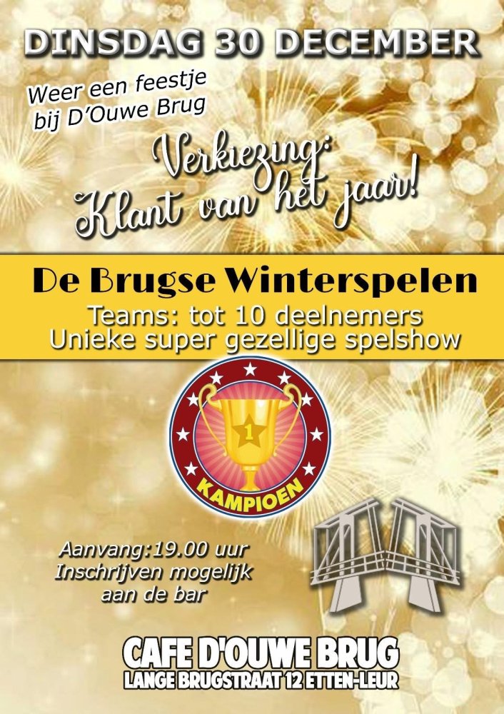 Een super gezellige spelshow voor teams tot 10 deelnemers op 30 december bij café d'Ouwe Brug.
