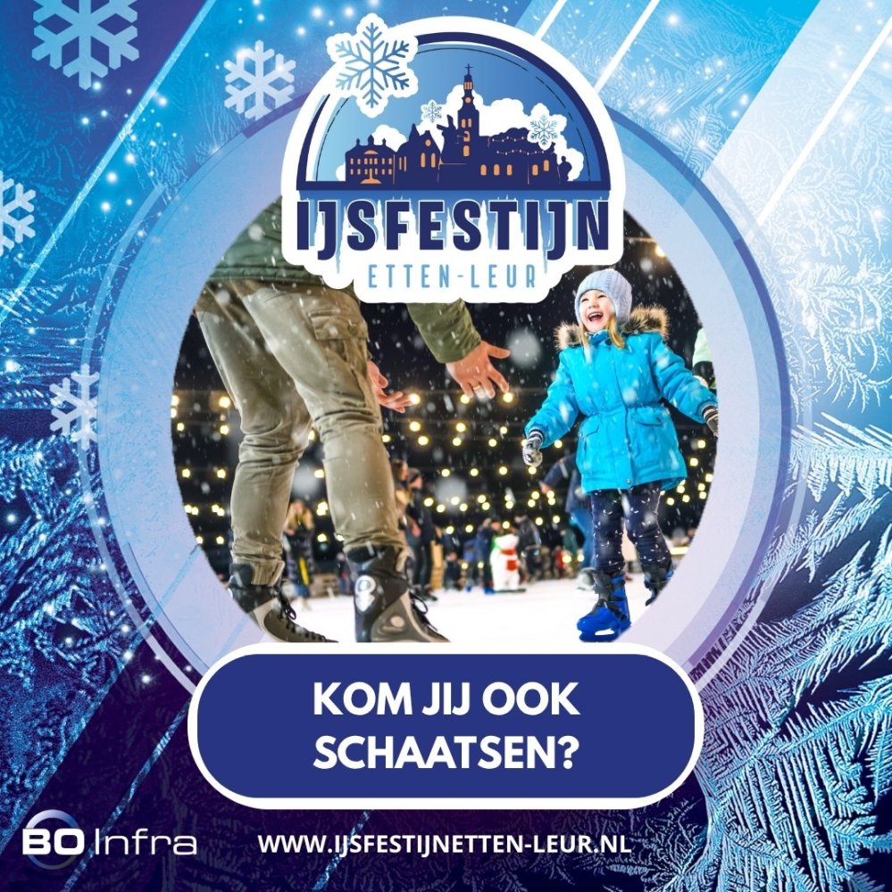 Dit jaar beleeft het IJsfestijn zijn comeback. Van donderdag 11 december tot en met zondag 4 januari ligt er een echte ijsvloer van 450m2 en super gezellig après-skate café op de Markt bij de Moeierboom in Etten-Leur.