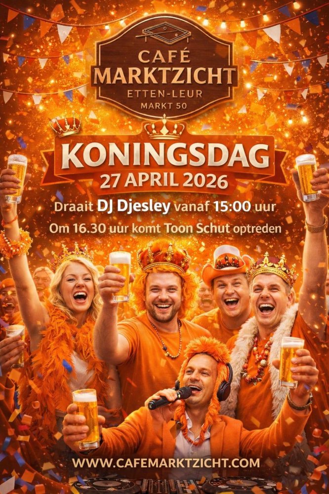 Op Koningsdag draait DJ Djesley vanaf 15.00 uur en is er om 16.30 uur een optreden van Toon Schut.