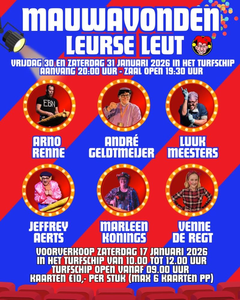 Op vrijdag 30 en zaterdag 31 januari 2026 organiseert Leurse Leut weer haar fameuze mauwavonden.