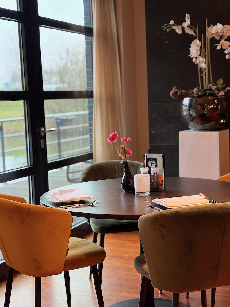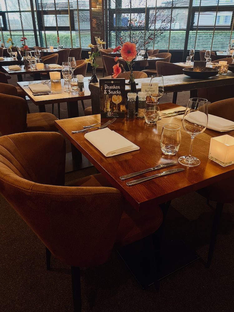 Bij het interieur is veel aandacht besteed aan sfeer. Het restaurant straalt rust en klassiek comfort uit, terwijl de brasserie moderner en huiselijk aanvoelt. De indeling is aangepast zodat het geheel minder formeel voelt en meer uitnodigt om te blijven zitten. Ook het terras is opnieuw ingericht en sluit perfect aan bij de landelijke uitstraling, waardoor het zowel binnen als buiten prettig vertoeven is.